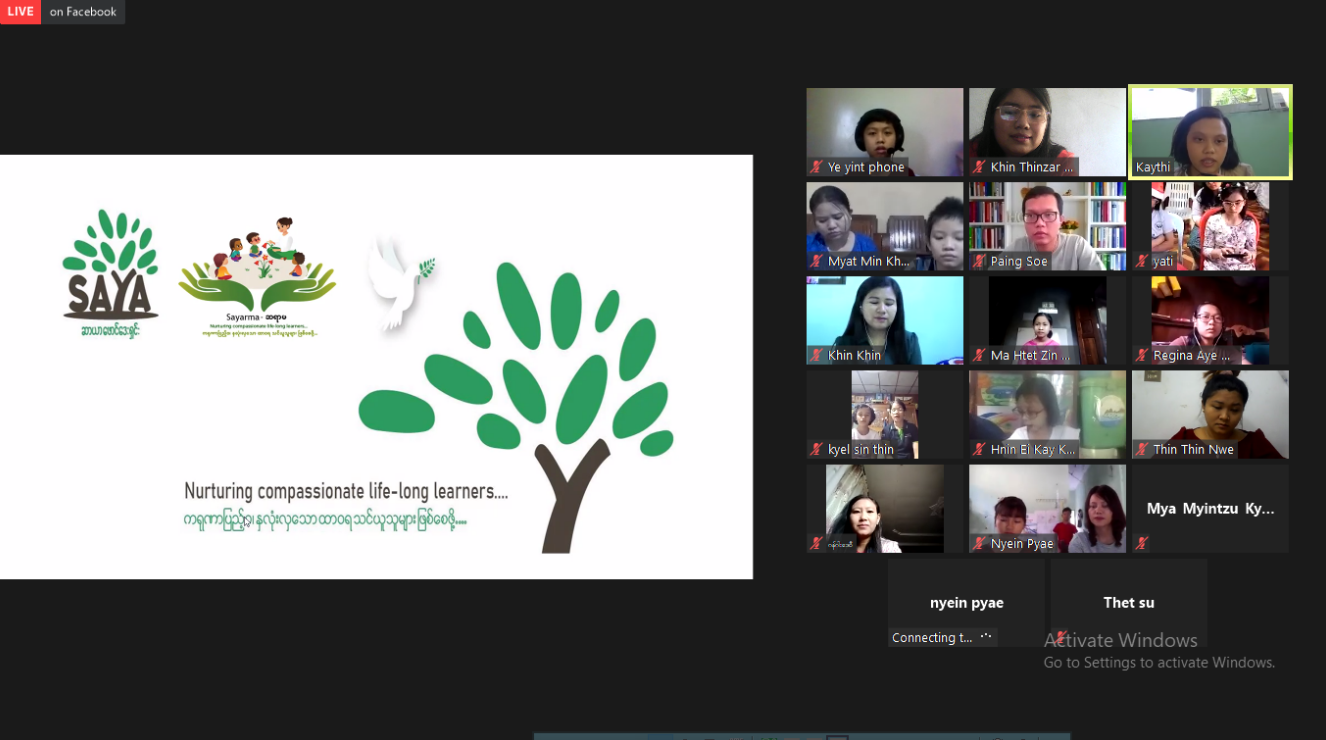 မြန်မာနိုင်သို့ COVID-19 ရောဂါပိုးများ စတင်ဝင်ရောက်လာပြီး သင်ယူသူများအနေဖြင့် လူတွေ့သင်ယူခြင်း လုပ်ငန်းများ လုပ်ဆောင်နိုင်ရန် အခက်အခဲများ ဖြစ်ခဲ့ကြသည်။ ကလေးများအနေဖြင့်လည်း ကျောင်းများ အားလုံး ပိတ်လိုက်ရပြီဖြစ်သဖြင့် သင်ယူမှုလုပ်ငန်းများနှင့် ဝေးကွာခဲ့ကြရသည်။ ထိုအခြေအနေတွင် ဆာယာဖောင်ဒေးရှင်း၏ တည်ထောင်သူ ဆရာမ အနေဖြင့် သူမ၏ ပညာရေးဆိုင်ရာ အသိပညာများ မျှဝေလျှက် ရှိသော ဆရာမ စာမျက်နှာမှ တဆင့် စေတနာ့ဝန်ထမ်း ဆရာ၊မများကို ဖိတ်ခေါ်ခဲ့ပြီး ကလေးများ အတွက် စဉ်ဆက်မပျက်သော သင်ယူမှုများ ဖြစ်စေရန်အတွက် စီစဉ်လုပ်ဆောင်ခဲ့သည်။